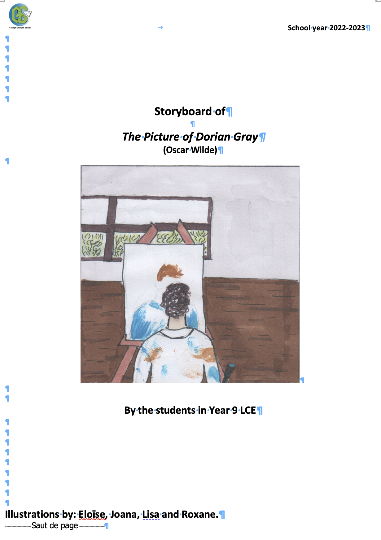 A big thank you to the students who volunteered to illustrate the storyboard !