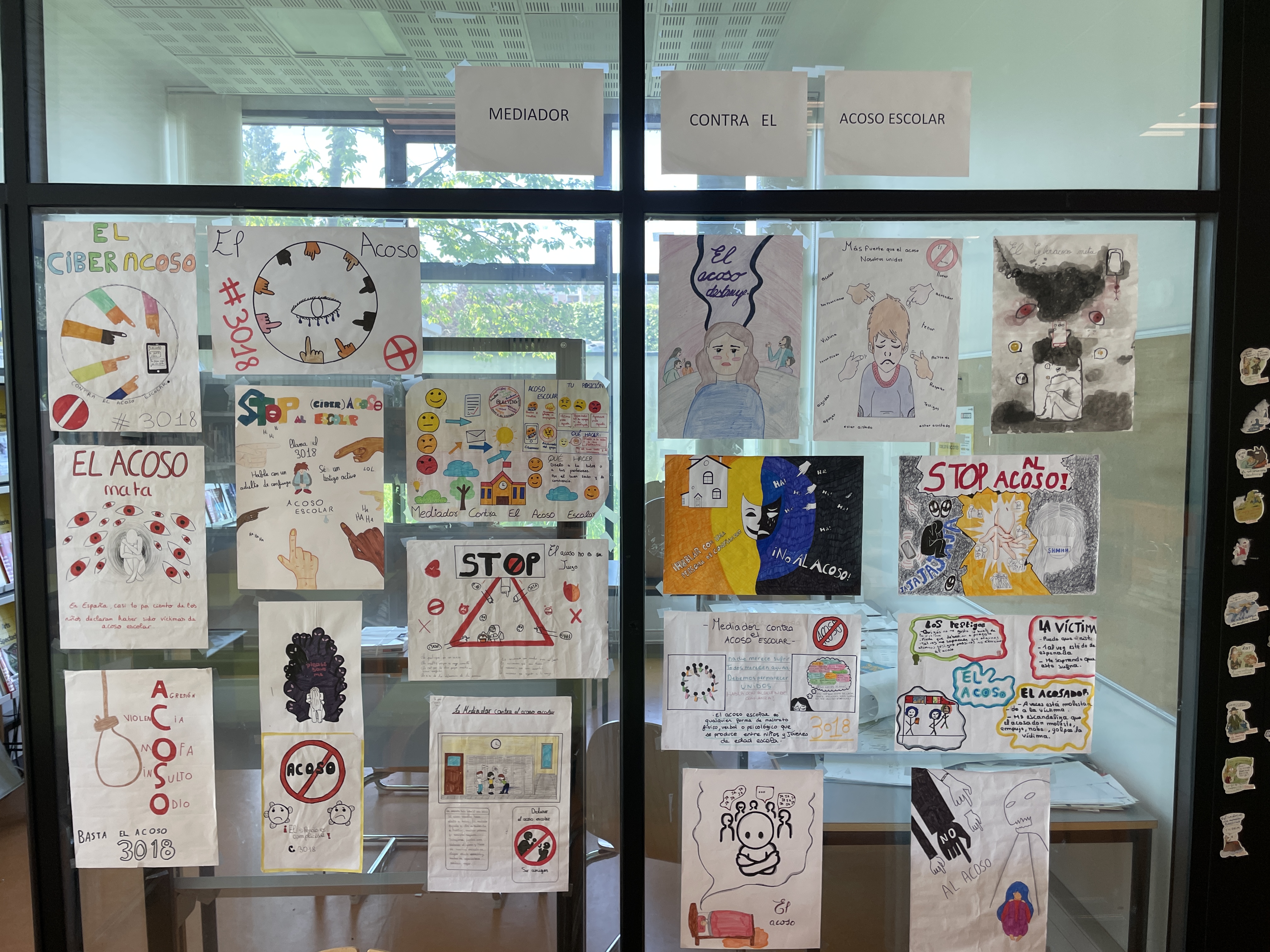 En cours d’espagnol, les 3A, 3C et 3E nous avons étudié une séquence sur le cyber harcèlement. Nous avons réfléchi au rôle essentiel des témoins actifs qui sont des médiateurs indispensables. Nous ne voulons plus être de simples témoins passifs. Nous avons été surpris lorsque nous avons pris conscience qu’un harceleur peut être un ancien harcelé qui ne fait que reproduire la violence qu’il a lui-même subie. Nous avons aussi réfléchi aux conséquences des « fishas » ou des messages postés sur les réseaux sociaux ou à travers les jeux vidéos. Dans notre collège, l’association Respect-Zone vient faire de la prévention et forme des élèves médiateurs. Pour finir, chacun a exercé sa créativité. Nous avons organisé dans la classe puis au CDI une exposition de bandes-dessinées intitulée « Mediador contra el ciber acoso ».